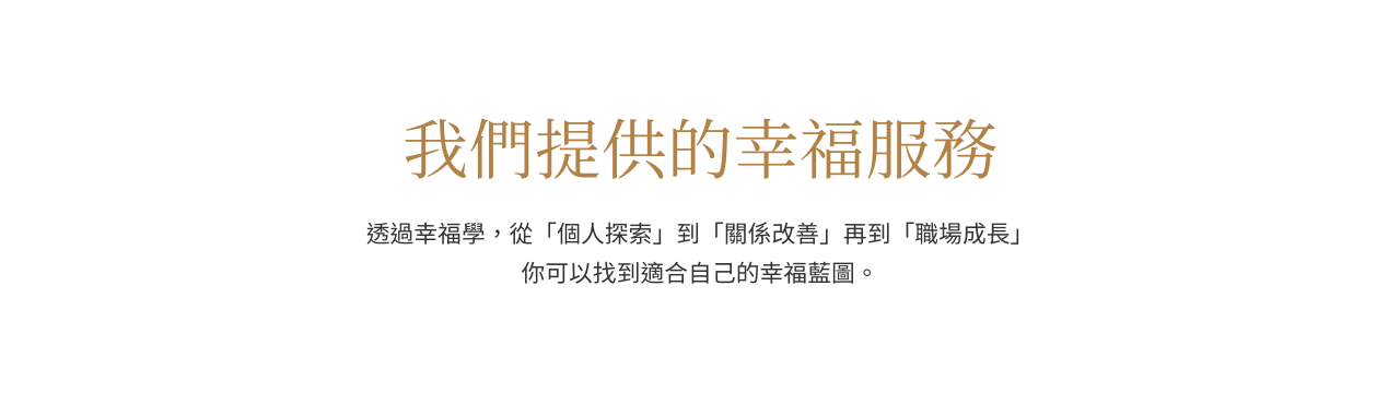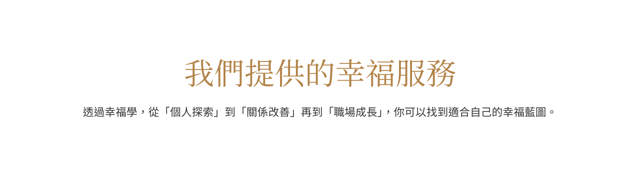 我們相信,幸福不是偶然,而是可以設計的。從專業諮詢到系統化課程,陪伴你打造全方位幸福人生!