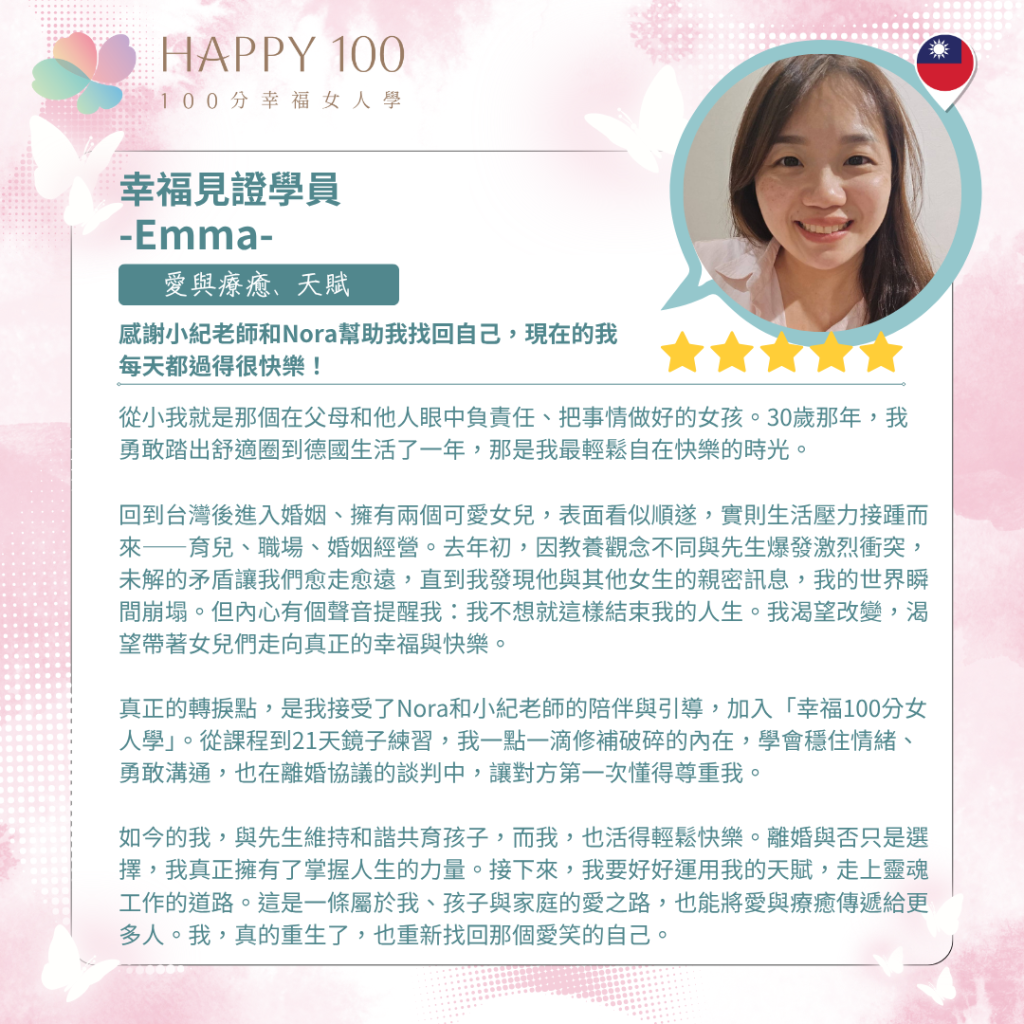 - 專注於華人女性的情感成長與幸福設計
