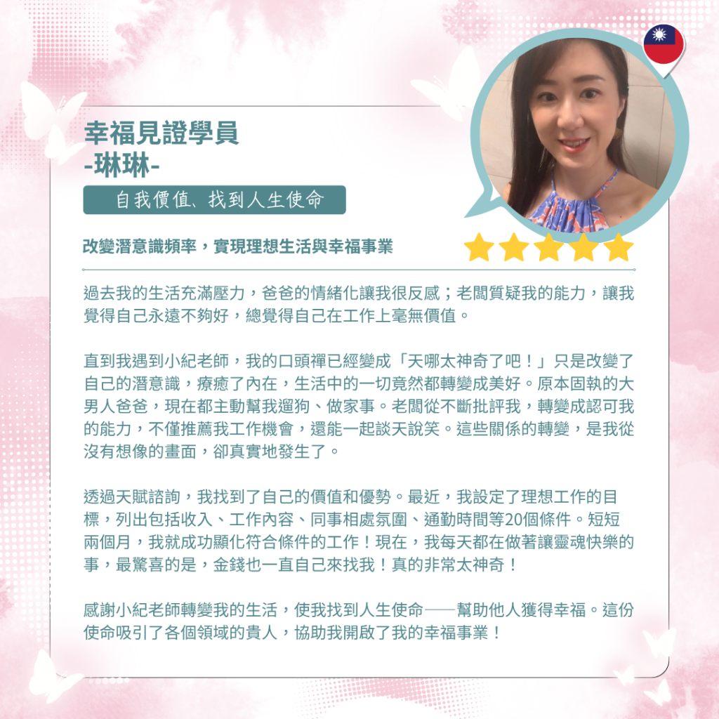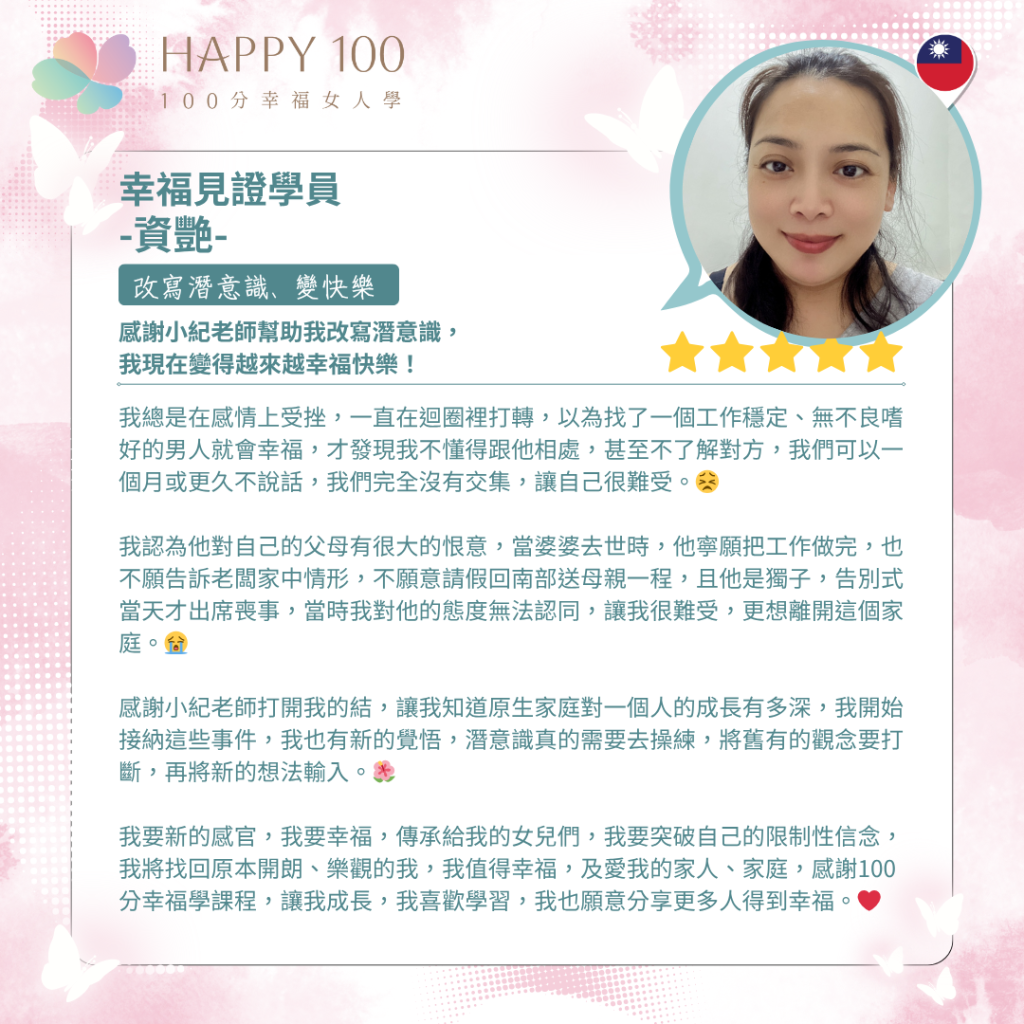 在參與《100分幸福女人學》課程,以及 21 天鏡子練習後,