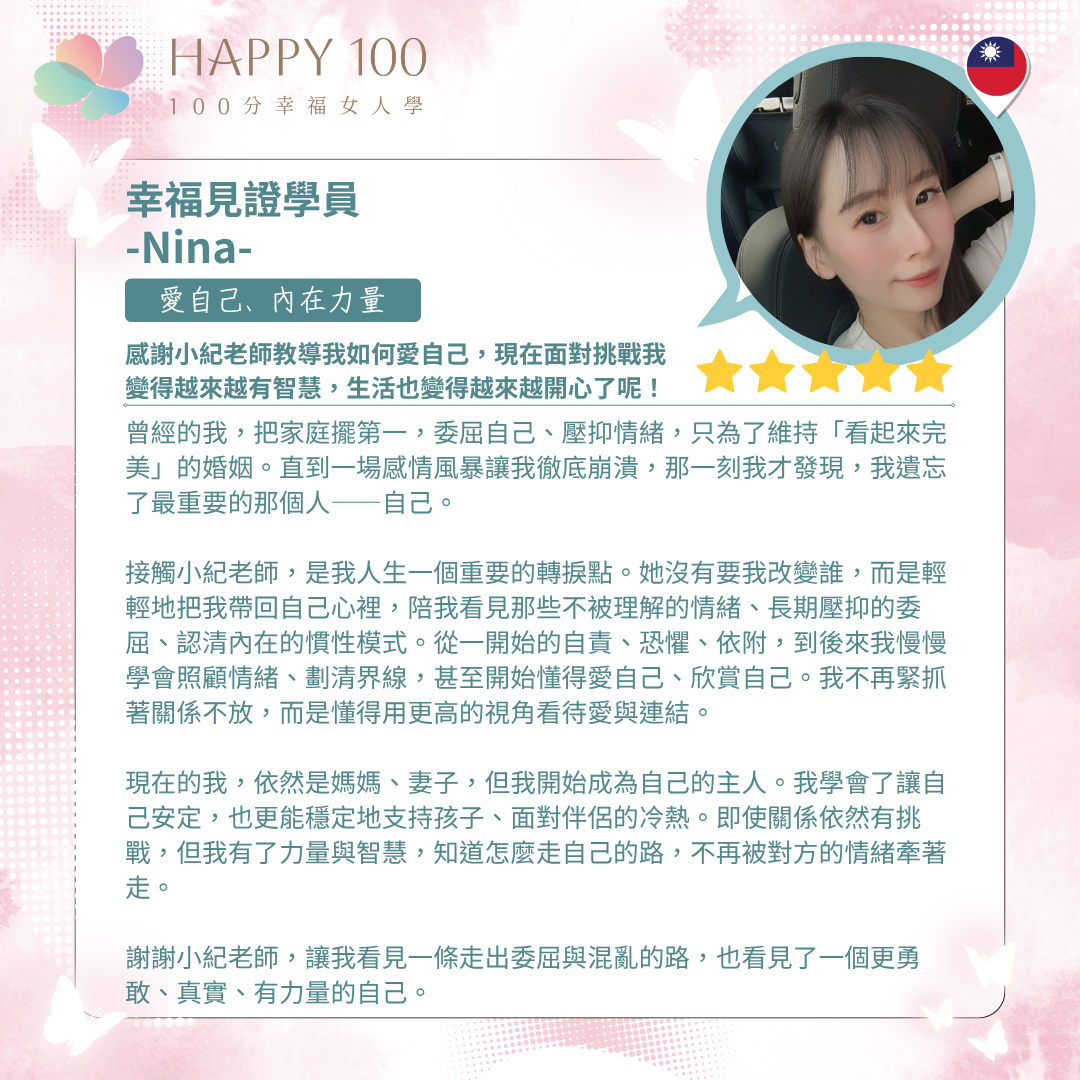 在參與《100分幸福女人學》課程,以及 21 天鏡子練習後,